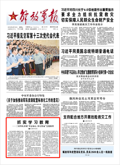 抓實(shí)學(xué)習(xí)教育,強(qiáng)化理論武裝,是我們黨開展集中教育活動的基本做法,也是我軍政治工作的優(yōu)良傳統(tǒng)。從黨的群眾路線教育實(shí)踐活動,到“三嚴(yán)三實(shí)”專題教育、“兩學(xué)一做”學(xué)習(xí)教育,都以思想教育、理論學(xué)習(xí)打頭,把學(xué)習(xí)教育緊抓不放、貫徹始終。軍隊(duì)開展主題教育要實(shí)現(xiàn)目標(biāo)任務(wù),達(dá)到預(yù)期效果,抓緊抓實(shí)學(xué)習(xí)教育是根本所在。請關(guān)注今日《解放軍報》的報道——