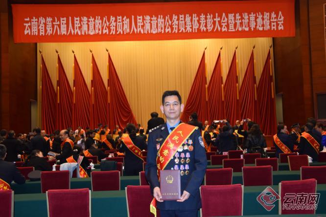 1月9日,云南省第六屆人民滿意的公務(wù)員和人民滿意的公務(wù)員集體表彰大會(huì)暨先進(jìn)事跡報(bào)告會(huì)在昆明召開(kāi)。領(lǐng)獎(jiǎng)臺(tái)上,一名身著警服、掛滿勛章的警官格外引人注目,他被授予云南“人民滿意的公務(wù)員”榮譽(yù)稱號(hào)。