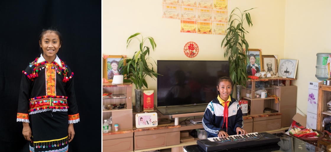 這是一張拼版照片。左圖:李成香,德昂族,今年12歲,家住云南省芒市三臺(tái)山德昂族鄉(xiāng)出冬瓜村,三臺(tái)山德昂族鄉(xiāng)九年制學(xué)校五年級(jí)學(xué)生(6月19日新華社記者秦晴攝);右圖:李成香在家里彈電子琴(6月19日新華社記者胡超攝)。她的夢(mèng)想是成為鋼琴家。