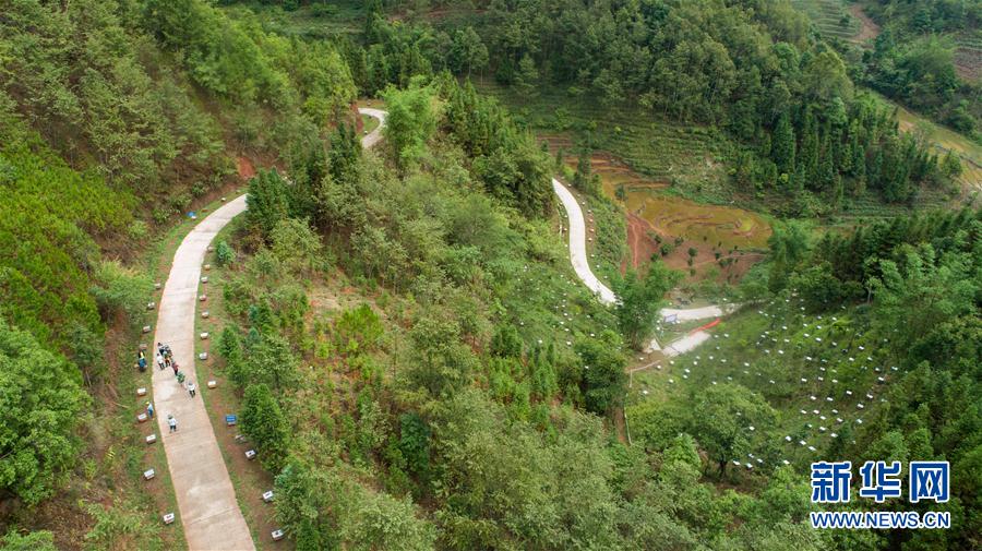 云南省西盟縣勐梭鎮(zhèn)班母村中華蜂養(yǎng)殖基地一景(6月16日無人機(jī)拍攝)。 精準(zhǔn)扶貧的春風(fēng),吹到了西南邊疆。在云南省西盟縣的拉祜山寨,人們告別了吃不飽、穿不暖、沒有安全住房的日子。學(xué)習(xí)先進(jìn)技術(shù),改變精神面貌,發(fā)展養(yǎng)蜜蜂、種甘蔗等甜蜜產(chǎn)業(yè),拉祜人的日子越過越甜。 新華社記者 胡超 攝