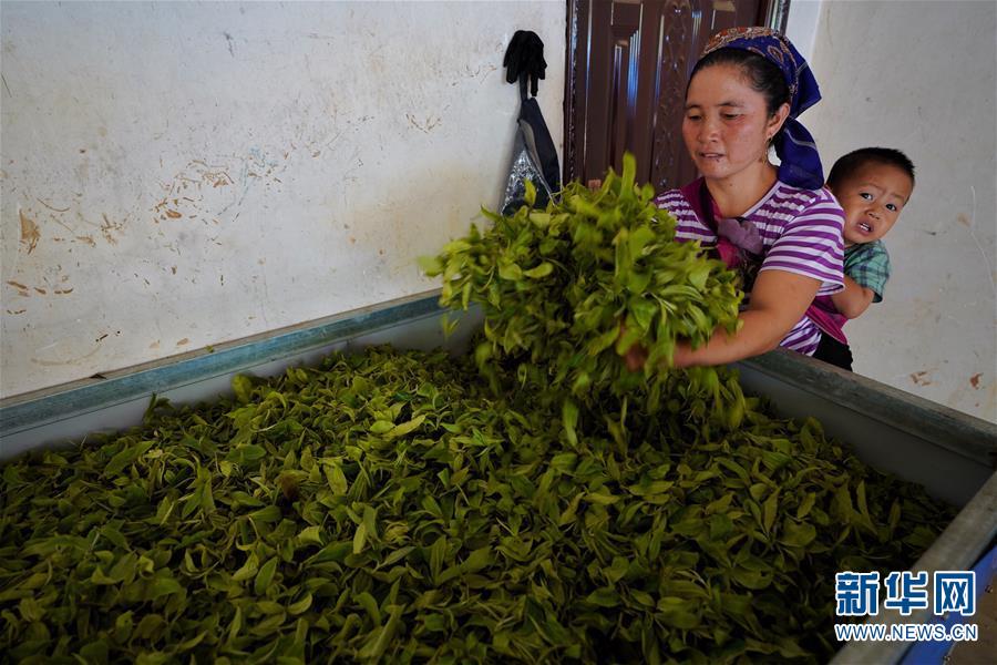 6月13日,布朗山布朗族鄉(xiāng)老曼峨村村民把茶樹鮮葉進(jìn)行萎凋處理。 位于我國西南邊陲的云南省西雙版納傣族自治州勐海縣布朗山布朗族鄉(xiāng)是著名的普洱茶產(chǎn)區(qū),該鄉(xiāng)近25萬畝茶樹成為布朗族群眾增收的“致富樹”。 新華社記者 秦晴 攝