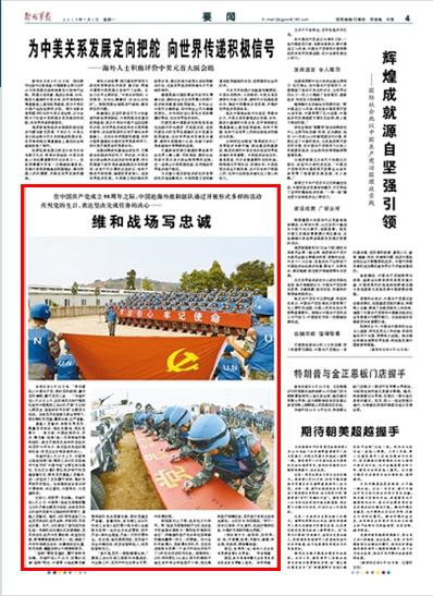 在中國共產(chǎn)黨成立98周年之際,中國赴海外維和部隊通過開展形式多樣的活動慶祝黨的生日,表達(dá)堅決完成任務(wù)的決心——
