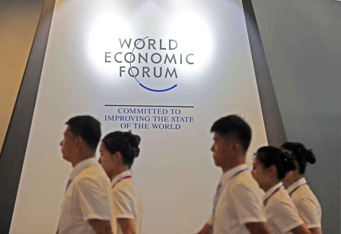 6月30日在論壇主會場大連國際會議中心拍攝的為夏季達(dá)沃斯論壇服務(wù)的工作人員。新華社記者 楊青 攝
