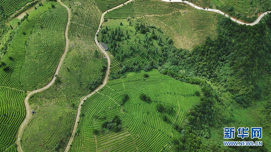 這是7月1日無人機(jī)航拍的丹寨扶貧茶園。2018年以來,貴州省丹寨縣的丹寨扶貧茶園采取社會公眾線上認(rèn)領(lǐng)茶園,茶園聘請當(dāng)?shù)刎毨魟?wù)工的模式帶動當(dāng)?shù)刎毨裘撠氃鍪铡P氯A社記者歐東衢攝