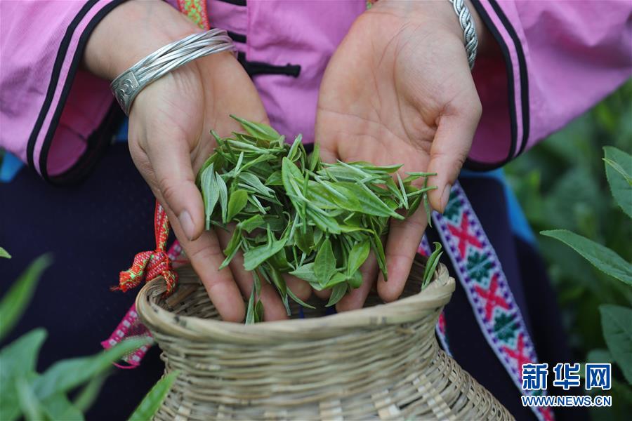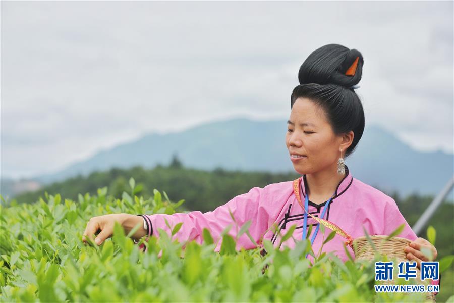 7月1日,當(dāng)?shù)剞r(nóng)民在丹寨扶貧茶園內(nèi)采茶。2018年以來,貴州省丹寨縣的丹寨扶貧茶園采取社會公眾線上認(rèn)領(lǐng)茶園,茶園聘請當(dāng)?shù)刎毨魟?wù)工的模式帶動當(dāng)?shù)刎毨裘撠氃鍪铡P氯A社記者歐東衢攝