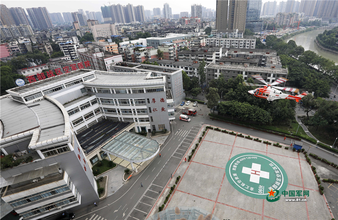 7月2日,一架搭載空軍“重傷員”的救援直升機準備降落在西部戰(zhàn)區(qū)空軍醫(yī)院專用機降場。
