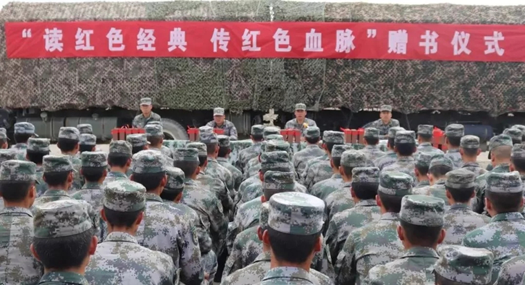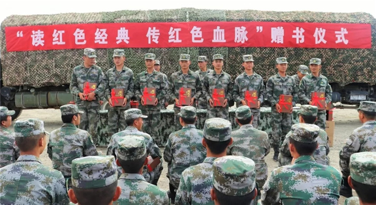 ▲ 官兵代表領(lǐng)取贈(zèng)書