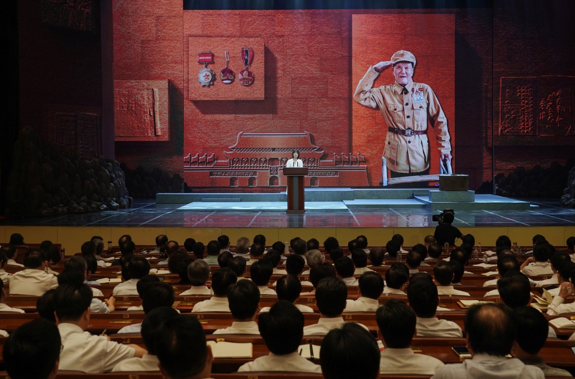 7月4日,張富清孫女張然在報告會上講述張富清同志的事跡。新華社記者 程敏 攝