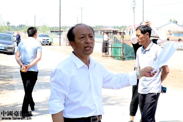 烏蘭花村第一書記王學(xué)范向采訪團(tuán)講述脫貧故事。(中國(guó)臺(tái)灣網(wǎng) 尹賽楠 攝)