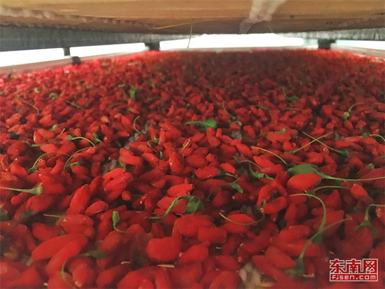 剛剛經(jīng)過(guò)烘干處理的枸杞 東南網(wǎng)記者 顏財(cái)斌 攝