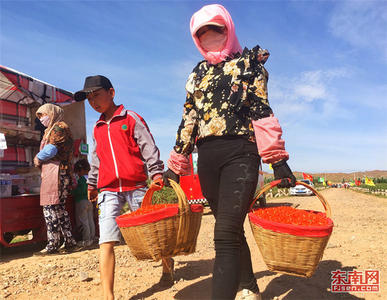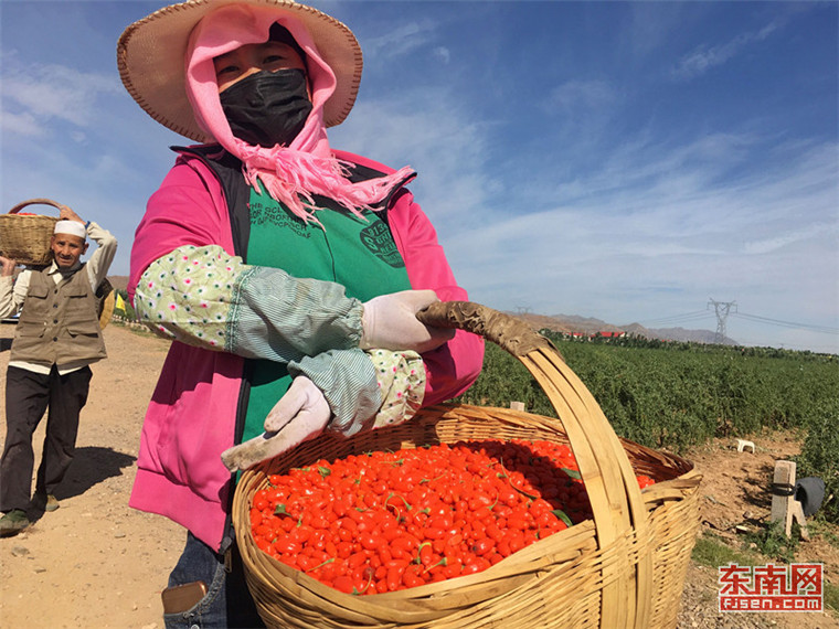 在枸杞采摘期,每天都有上千名農(nóng)民參與采摘,增加收入。 東南網(wǎng)記者 顏財(cái)斌 攝