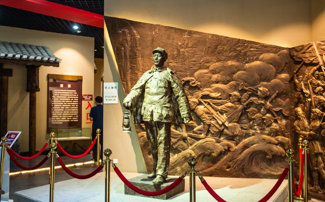 貴州北部遵義市播州區(qū)楓香鎮(zhèn)茍壩村茍壩會(huì)議陳列館內(nèi),有一尊毛澤東身披外套、提著馬燈疾步行走的雕塑,還原的是茍壩會(huì)議期間毛澤東夜半趕往周恩來住處共商大事的情景。