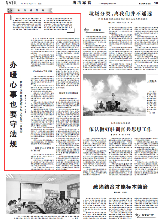 新疆軍區(qū)某師按照“謀事先學(xué)法,遇事先找法,辦事嚴(yán)依法,人人都守法”思路,依法規(guī)范領(lǐng)導(dǎo)機(jī)關(guān)權(quán)力運(yùn)行,避免“人為因素”影響法規(guī)制度剛性落實(shí),以挺紀(jì)在前、執(zhí)法必嚴(yán)的實(shí)際行動(dòng),帶動(dòng)部隊(duì)形成依法履職用權(quán)的濃厚氛圍。請(qǐng)關(guān)注《解放軍報(bào)》的報(bào)道——