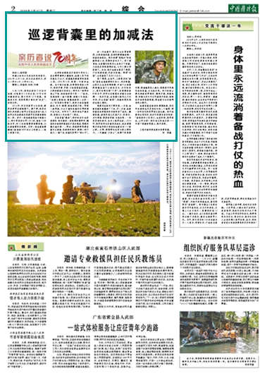 入伍18年,我先后參加了80余次巡邏,行程累計(jì)2萬(wàn)余公里,47次與死神擦肩而過(guò),累計(jì)用壞12個(gè)背囊。背囊雖無(wú)言,卻是我朝夕相處的“戰(zhàn)友”,親密無(wú)間。