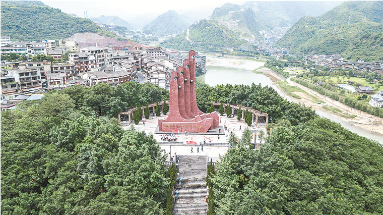 人們?cè)谌蕬咽屑t軍四渡赤水紀(jì)念園參觀(7月5日無人機(jī)拍攝)。新華社發(fā)