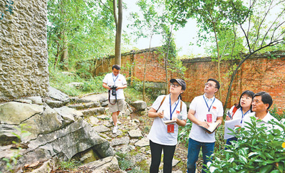 記者在綦江區(qū)石壕紅軍烈士墓采訪。王京華攝(人民視覺(jué))