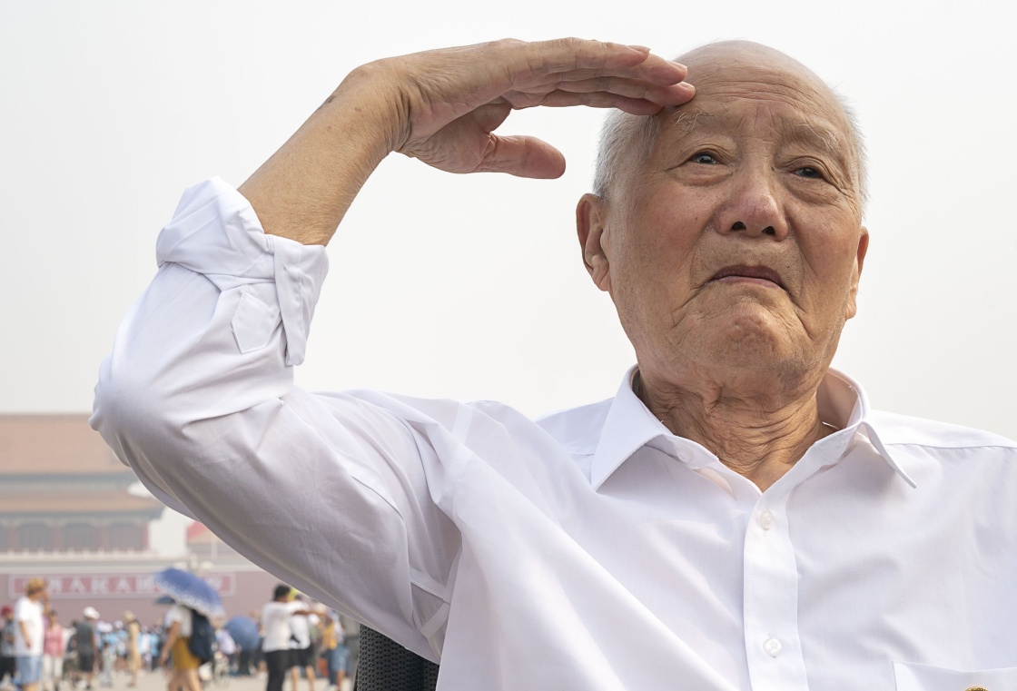 這位老人是來自湖北、剛被表彰為全國模范退役軍人的94歲老英雄張富清。親眼到天安門廣場看看,是這位為黨和國家奉獻一生的老英雄多年來的心愿。