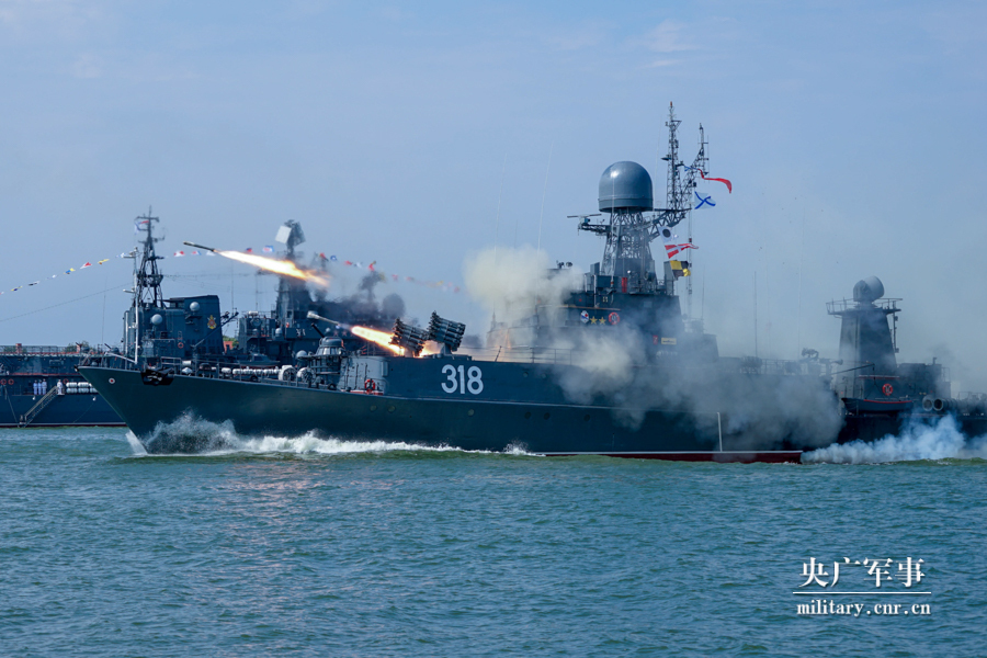 俄軍艦發(fā)射反潛火箭彈。吳浩宇 攝