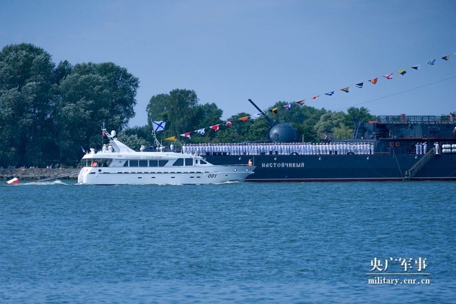 波羅的海艦隊(duì)司令乘快艇檢閱“堅(jiān)持”號(hào)導(dǎo)彈驅(qū)逐艦。吳浩宇 攝