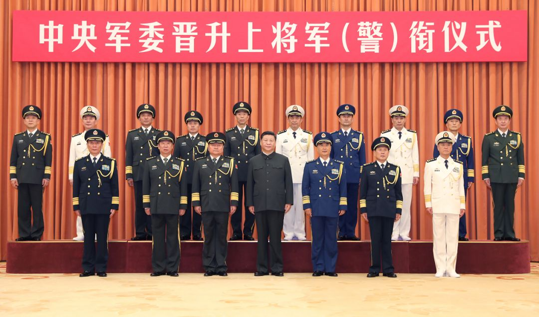 習近平頒發(fā)命令狀并向晉銜的軍官警官表示祝賀