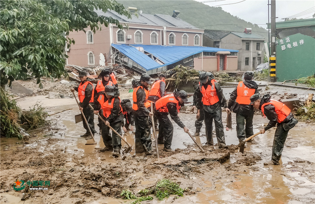 8月10日上午7時,接到災情報告,支隊兩百余名官兵分赴鄞州、北侖、象山、余姚等地救援被困群眾。