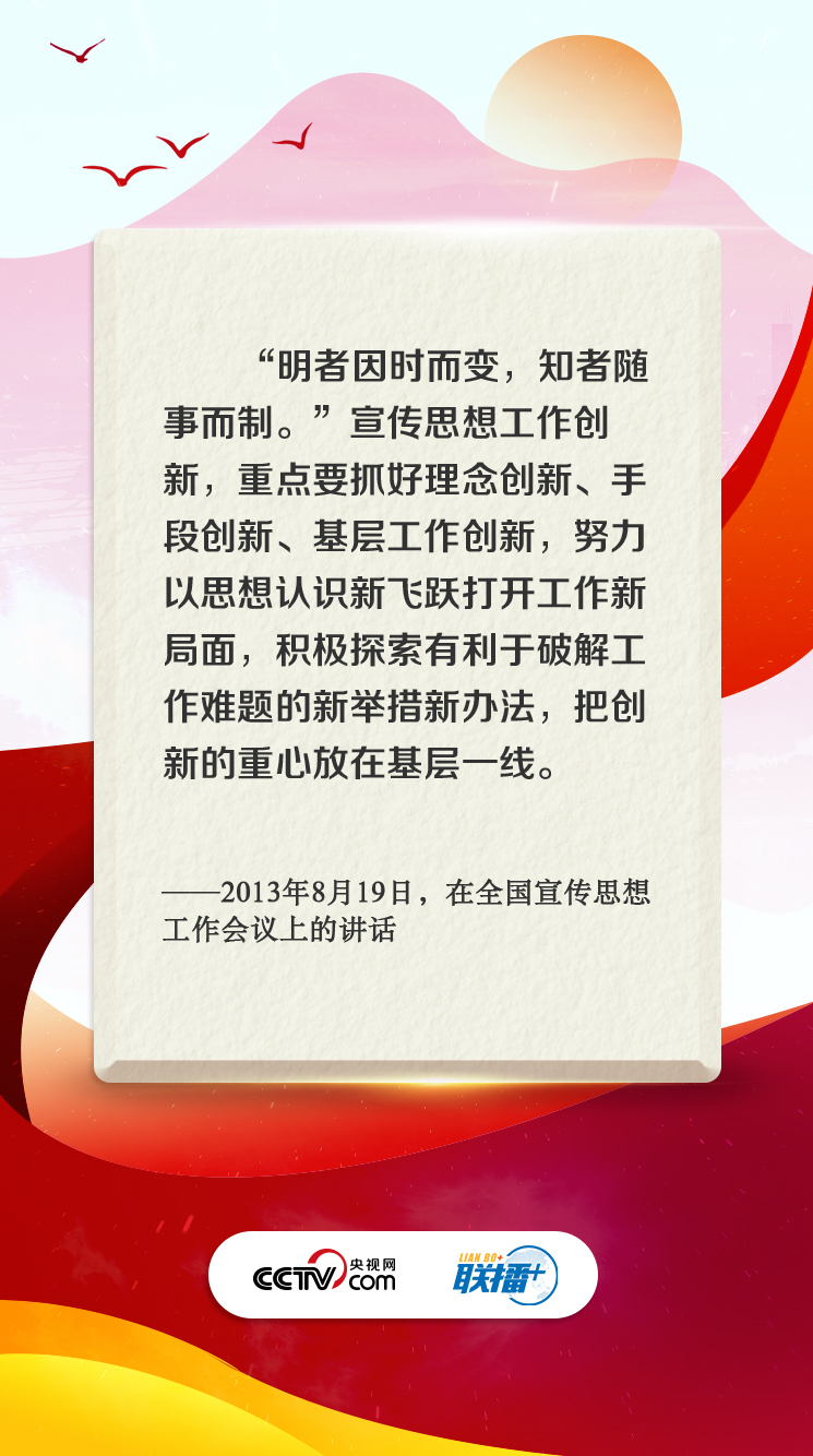 如何用創(chuàng)新打造宣傳思想工作的強(qiáng)大引擎?如何在創(chuàng)新中贏得主動權(quán)?回顧習(xí)近平總書記這些重要論述,央視網(wǎng)《聯(lián)播+》與您一起學(xué)習(xí)。