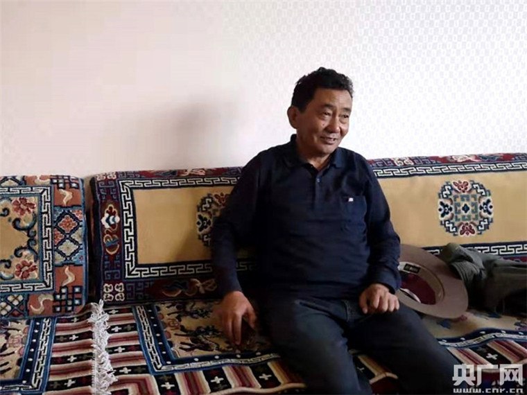圖為克松社區(qū)黨支部書(shū)記邊巴次仁正在接受記者采訪。(央廣網(wǎng)記者李志勇 攝)