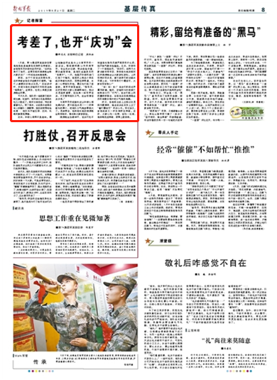 第74集團軍某旅防空營高炮連赴某地參加實彈射擊考核前,該連指導員孫坡作動員時說如果打了勝仗返營后組織燒烤晚會給大家慶功。然而,由于個別官兵發(fā)揮失常,這次考核該連總評成績并不理想,但燒烤晚會如期舉行。請關注今日《解放軍報》的報道——