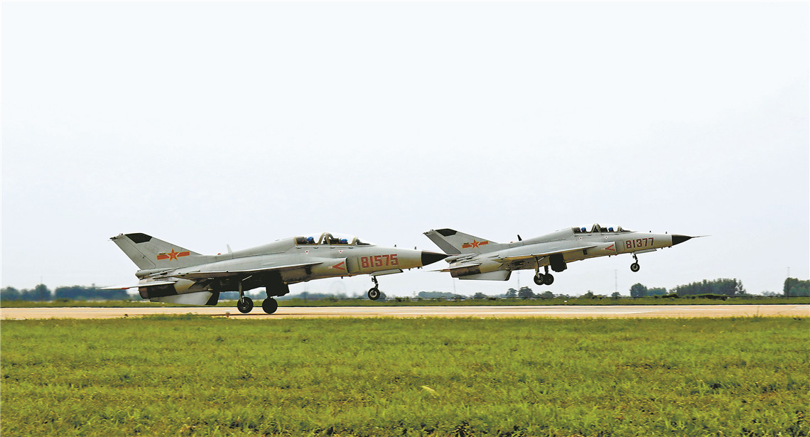 2019年8月8日至9日,海軍航空兵某團在高溫中開展實戰(zhàn)化飛行訓練。圖為戰(zhàn)機起飛瞬間。藍鵬飛 攝
