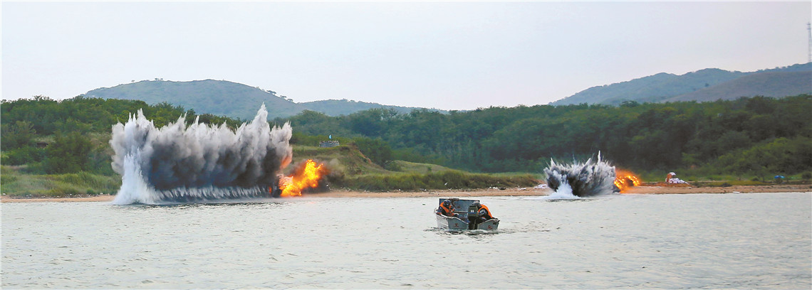2019年8月上中旬,海軍陸戰(zhàn)隊某旅組織開辟水上通路訓練。