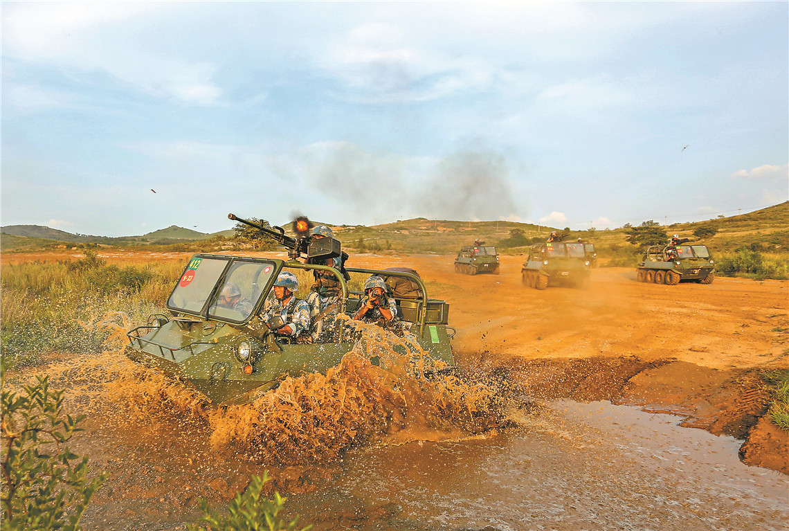 2019年8月19日,海軍陸戰(zhàn)隊某旅開展全地形車戰(zhàn)術訓練。牛濤 攝