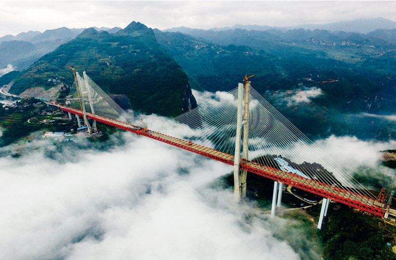 未來的路從腳下延伸。扶貧脫貧事業(yè)是一項(xiàng)長(zhǎng)期的歷史性任務(wù),沒有終點(diǎn),只有不斷開創(chuàng)的新起點(diǎn)。北盤江大橋是中國(guó)快速發(fā)展的一個(gè)縮影,它的建成極大改善了云貴地區(qū)的交通情況。圖為云端俯瞰的“世界最高橋”北盤江大橋。 吳東俊/攝