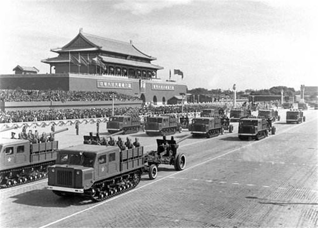 1957年國(guó)慶閱兵,中國(guó)自行生產(chǎn)的伊爾-28型噴氣式轟炸機(jī)、殲5型殲擊機(jī)首次受閱。受閱官兵共7064人,是新中國(guó)國(guó)慶閱兵受閱人數(shù)最少的一次。此外,國(guó)外來(lái)賓多也是這次閱兵的特別之處。應(yīng)邀來(lái)華訪問(wèn)的50多個(gè)國(guó)家的外賓、各國(guó)駐華使節(jié)和外交官員,以及在華外國(guó)專家等觀看了閱兵式。