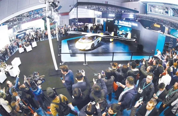2018年11月5日,全球第一個(gè)以進(jìn)口為主題的國(guó)家級(jí)展會(huì)——首屆中國(guó)國(guó)際進(jìn)口博覽會(huì)開(kāi)幕。圖為觀眾在“會(huì)飛的汽車(chē)”前參觀。杜洋 攝
