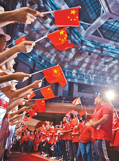 9月7日,來自廣州、澳門和香港的大灣區(qū)職工代表揮舞國旗,以文藝匯演的方式迎接國慶。當(dāng)日下午,由廣東省總工會、香港工會聯(lián)合會、澳門工會聯(lián)合總會聯(lián)合主辦的大灣區(qū)職工慶祝中華人民共和國成立70周年暨澳門特別行政區(qū)成立20周年文藝匯演在廣州中山紀(jì)念堂舉行。