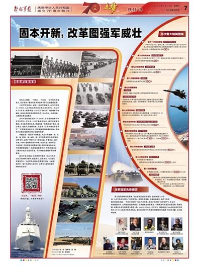 人民軍隊發(fā)展史,就是一部改革創(chuàng)新史。在黨的領(lǐng)導(dǎo)下,70年來,人民軍隊改革創(chuàng)新步伐從來沒有停止,先后經(jīng)歷了11次重大精簡整編,走過了從“騾馬化”到機械化半機械化,再向信息化轉(zhuǎn)變的輝煌歷程,從小到大,從弱到強,從勝利不斷走向勝利。請關(guān)注今日《解放軍報》的報道——