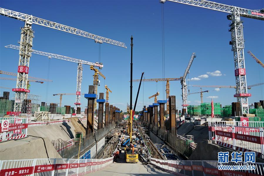 這是8月29日拍攝的京雄城際鐵路雄安站施工現(xiàn)場。 新華社記者 牟宇 攝