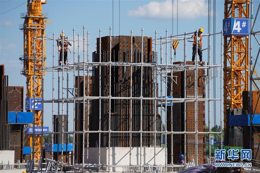 工人在京雄城際鐵路雄安站施工(8月29日攝)。 新華社記者 邢廣利 攝