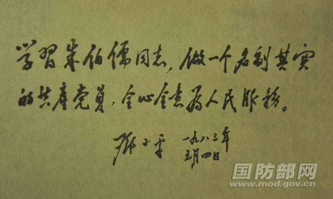 鄧小平題詞:“學(xué)習(xí)朱伯儒同志,做一個(gè)名副其實(shí)的共產(chǎn)黨員,全心全意為人民服務(wù)。”(