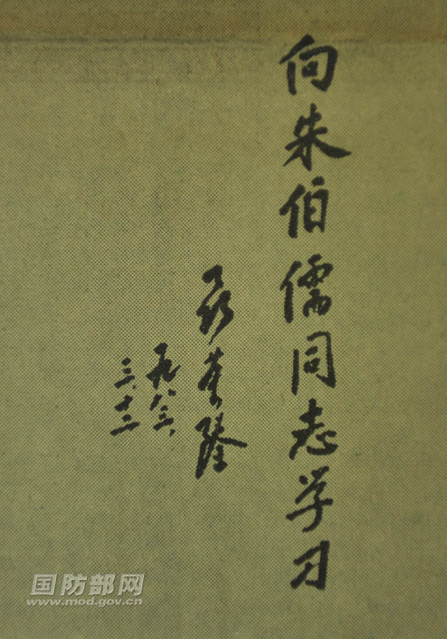 聶榮臻題詞:“向朱伯儒同志學(xué)習(xí)”。(