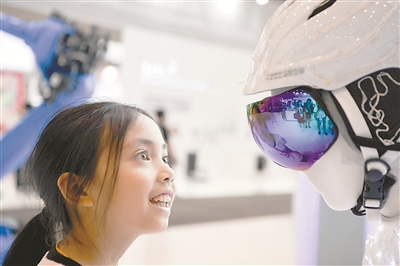 今年是“5G元年”,5G技術(shù)構(gòu)建的“數(shù)字高速公路”,將催生一批新的媒介形態(tài),給有線電視網(wǎng)絡(luò)通信化改造、超高清內(nèi)容的生產(chǎn)與制作、VR/AR/MR等制作帶來機(jī)遇,將對(duì)媒體融合發(fā)展帶來“超乎想象”的變化。這是2019年8月25日,一名小朋友在2019智博會(huì)主會(huì)場重慶國際博覽中心參觀。新華社記者 王全超 攝
