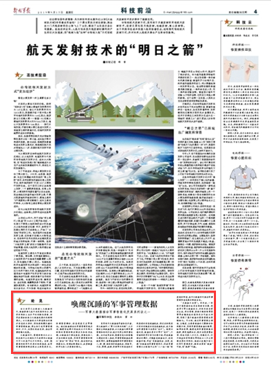 當(dāng)今世界已全面進(jìn)入大數(shù)據(jù)時(shí)代,數(shù)據(jù)資源已成為決定國(guó)防安全、經(jīng)濟(jì)命脈和工業(yè)水平的戰(zhàn)略性資源,世界各國(guó)紛紛搶占大數(shù)據(jù)發(fā)展的戰(zhàn)略制高點(diǎn)。以大數(shù)據(jù)技術(shù)為典型特征的新興信息技術(shù)革命,將徹底喚醒沉睡的軍事管理數(shù)據(jù),催生和引發(fā)軍事管理組織、方式、決策的深刻變革,推動(dòng)軍事智能化發(fā)展。請(qǐng)關(guān)注今日《解放軍報(bào)》的報(bào)道——
