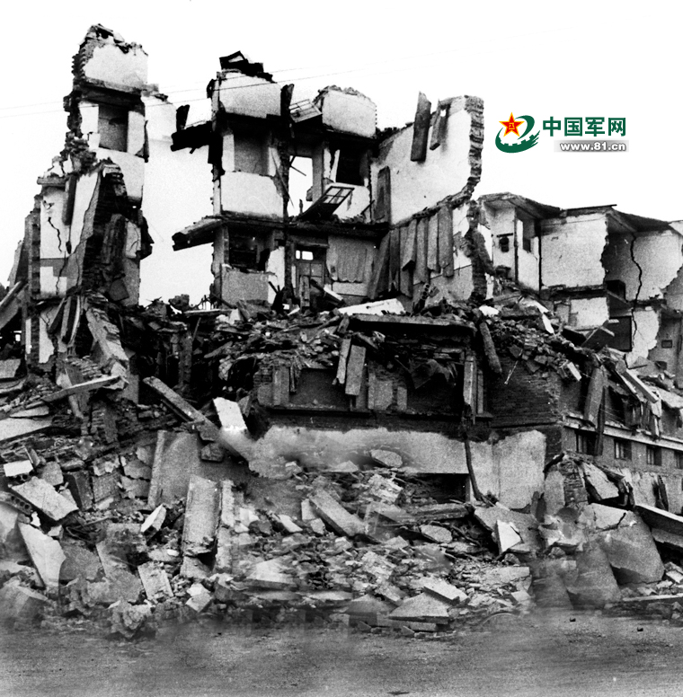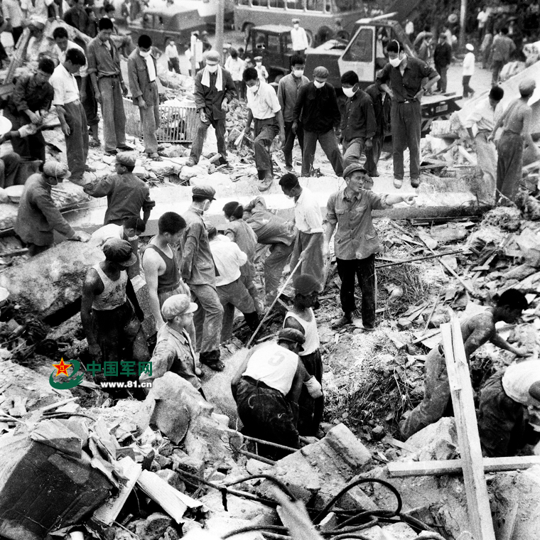 1976年唐山大地震,解放軍官兵奔赴災(zāi)區(qū),搶救遇難群眾。