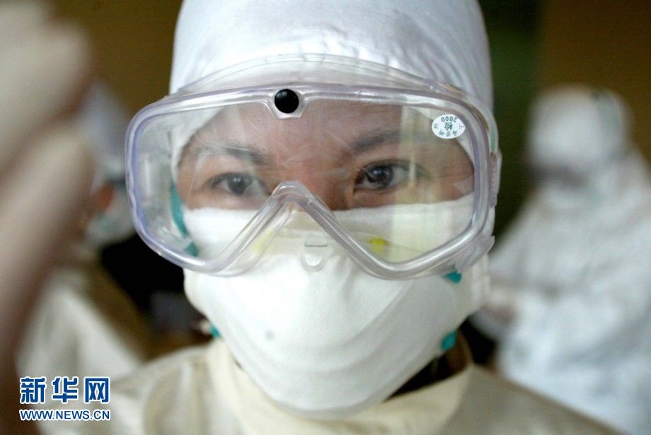 2003年5月3日, 來自原濟南軍區(qū)總醫(yī)院的主管護師于穎在北京小湯山醫(yī)院為接收患者做準備。新華社記者王建民攝