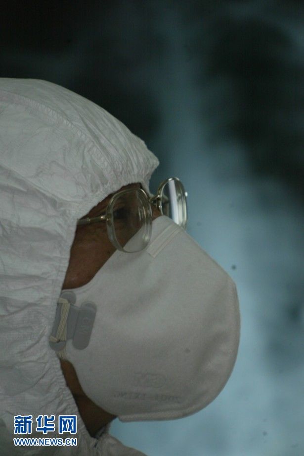 2003年5月,督導員許鳳芹上崗前認真穿著防護服。許鳳芹來自解放軍第四軍醫(yī)大學,是一位年輕的門診護士長。新華社記者王建民攝