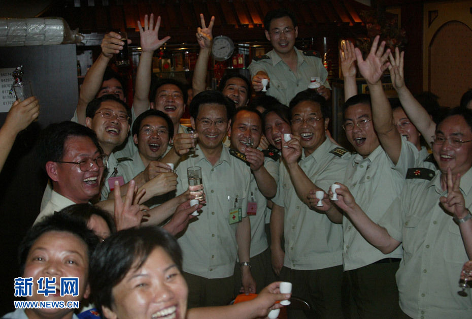 2003年6月21日,院長張雁靈、副院長鄧傳福、周先志等在餐廳慶祝勝利。