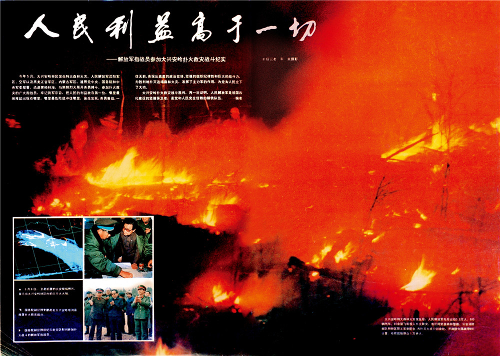 大興安嶺滅火救災(zāi)——1987年8月,《解放軍畫報》刊登專題《人民利益高于一切》,報道了解放軍官兵參加大興安嶺滅火救災(zāi)任務(wù)的英雄事跡。