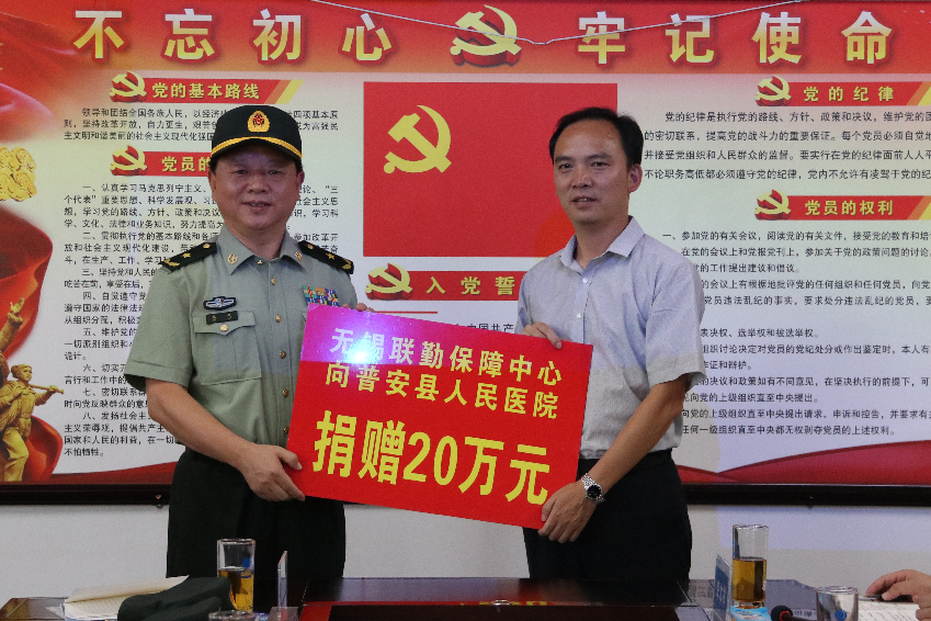 8月20日,無錫聯(lián)勤保障中心高汛政委帶領(lǐng)中心健康扶貧對口幫扶工作巡回督導(dǎo)組一行4人,到貴州省黔西南州普安縣人民醫(yī)院,對第909醫(yī)院對口幫扶普安縣人民醫(yī)院情況進行現(xiàn)地檢查督導(dǎo)。