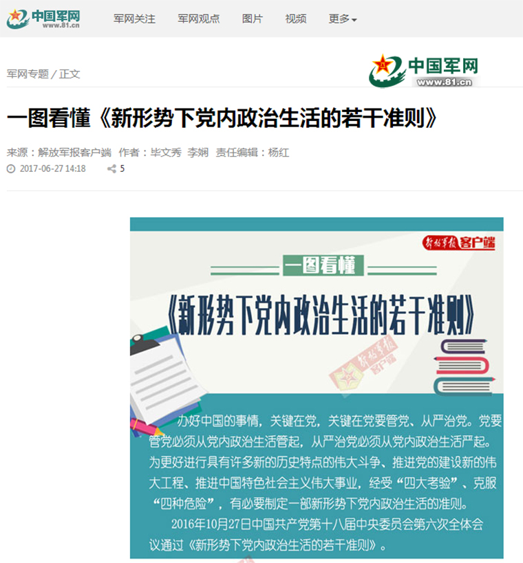 軍委率先垂范,三軍看齊緊跟,軍隊(duì)黨內(nèi)政治生活的政治性、時(shí)代性、原則性、戰(zhàn)斗性不斷增強(qiáng)。
