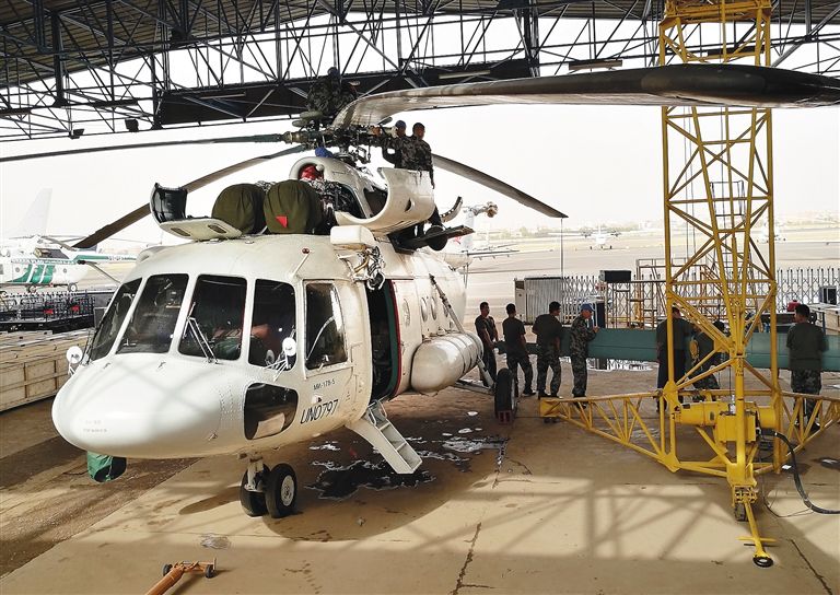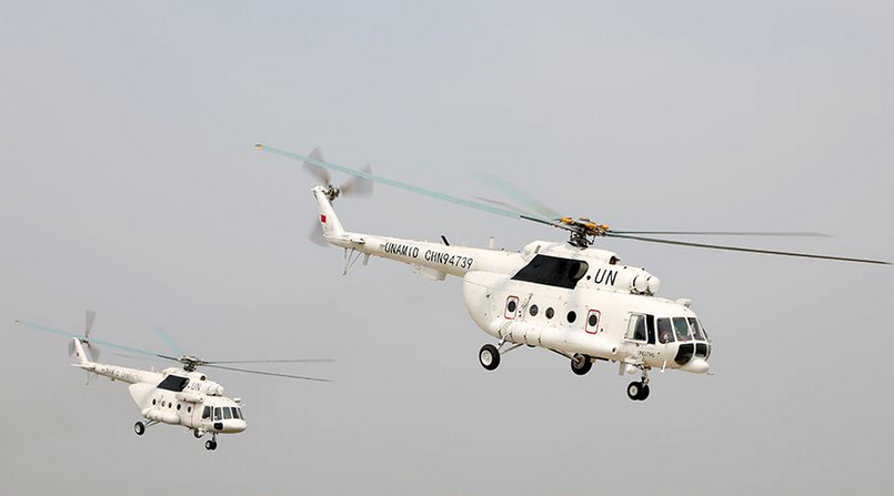 中國首支維和直升機分隊下設1個飛行連、1個機務連和1個保障連,兵力規(guī)模140人,配備4架米-171中型多用途直升機,主要執(zhí)行空中巡邏、人員輸送、物資運輸?shù)热蝿铡?/p>